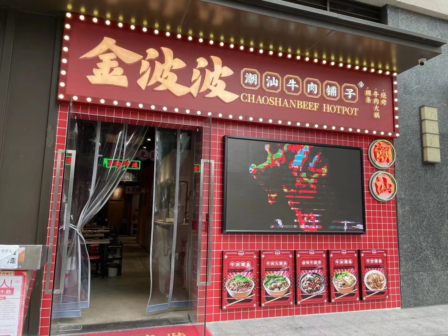 深圳市南山區(qū)金波波潮汕牛肉鋪?zhàn)邮且患乙猿鄙腔疱伒匿佔(zhàn)樱挥谀仙酱鬀_商業(yè)街中心,潮汕火鍋?zhàn)畛雒漠?dāng)屬牛肉火鍋,傳統(tǒng)的潮汕火鍋對(duì)食材的原本味道要求很高,清湯鍋底用的是簡(jiǎn)單的牛骨湯或者清湯,涮出來的食材保留原本的味道,而紅油湯底是吃火鍋?zhàn)罨镜臏住xx鴦鍋滿足了客人的需求,也保留了潮汕火鍋的特色.